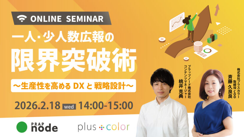 【共催ウェビナー開催】2026年2月18日(水) 14:00◆一人・少人数広報の限界突破術〜広報部の生産性を高めるDXと戦略設計〜