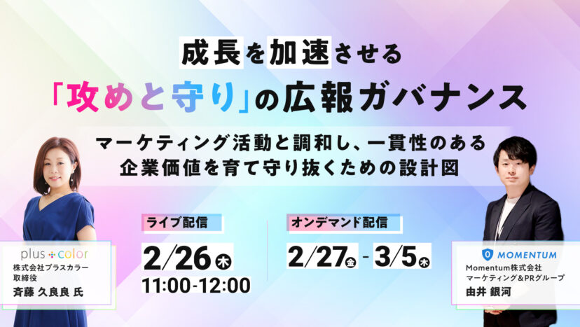 【共催ウェビナー開催】2026年2月26日(水)11:00◆成長を加速させる「攻めと守り」の広報ガバナンス 〜マーケティング活動と調和し、一貫性のある企業価値を育て守り抜くための設計図〜
